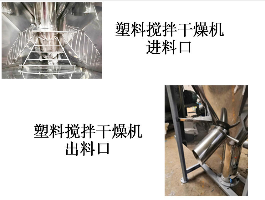 塑料螺旋混合干燥机主要用于多种颜色塑料颗粒的混合、干燥。是注塑机.造粒机的必备配套设备之一,塑料粒子从进料 斗进入,在螺旋叶片推进力的作用下,沿着叶片表面向上滑动前进,在上部的离心力作用下,向桶体四周抛开,散开的物料不断向下移动,由循环出料口和桶内循环料口不断被螺旋叶片带动提升,这样反复循环,达到混合的目的。与此同时空气经鼓风机送至电加热箱中,加热后成为热风再经温控表自动控制,以均匀合适的热风从树脂颗粒间一路穿透,穿过物料层,沿途进行热交换,不断带走湿气,树脂粒子由上而下徐徐下降过程中连续不断得到吹扫干燥,完成高效率干燥和混合工艺。