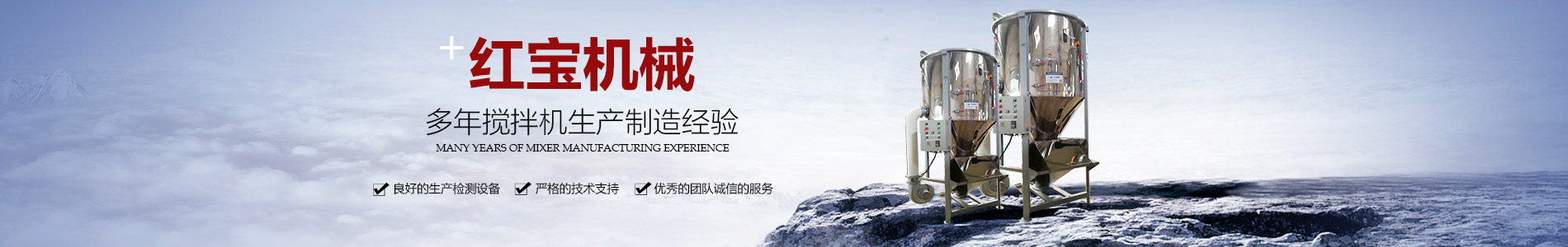 红宝塑料搅拌机主要由进料料斗、引料螺旋、物料提升螺旋、筒体、卸料阀等结构组成。采用的是螺杆搅拌的工作原理,起动机器后,被搅拌物料从内螺旋混合机的进料斗经引料螺旋进入立式螺旋输送器,被混合物料经过螺旋向上提升到达桶上部后,再以伞状飞抛,沿混料筒体四周下落。从顶部抛洒下来的物料掉入混合机底部的缺口处,自动进入垂直螺旋输送器,物料被再次向上提升、混合。原料在桶内上下翻滚搅拌,短时间内即可将大量原料均匀的混合完毕。